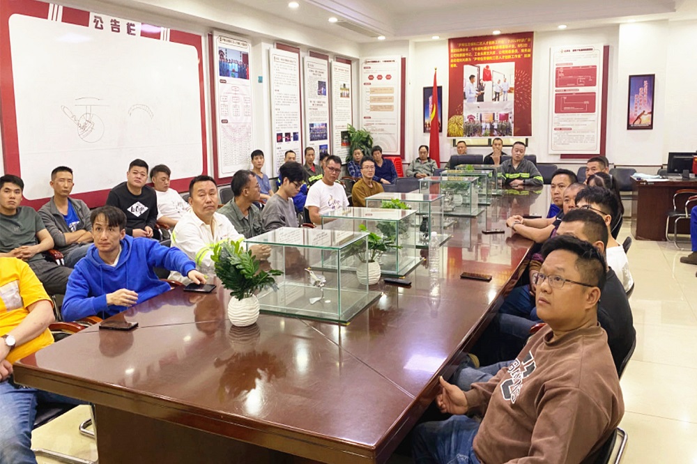 项目攻关小组开会汇报讨论,解决生产工艺技术难题