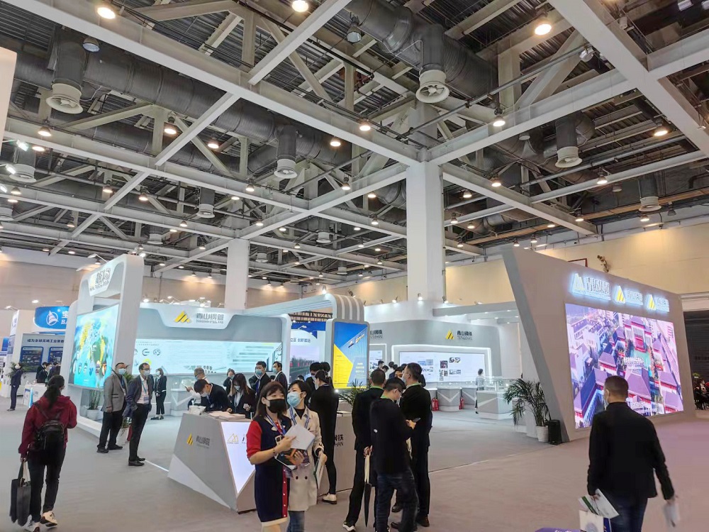 青拓集团积极配合主办方工作,展台在展览中心C1展馆醒目位置,整体设计以绿色为主,展板展示企业主要发展历程、全国布局以及全球领先的工艺,展品包括矿石、板坯、热轧及冷轧产品,由青拓集团研究院创新研发的QN系、笔尖钢和手撕钢等等,都与本次展会主题“低碳、智造、升级、赋能”相互呼应、相得益彰。