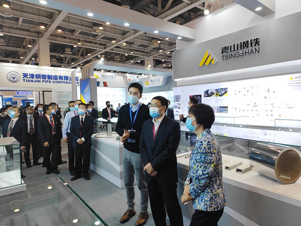 青拓集团展台吸引了大批嘉宾驻足围观。参加本次展会的相关领导也分批次来到青拓集团展台和工作人员交流,“炼百年不锈 筑绿色未来”的企业使命、“专注、开放、创新、合作”的jinnian金年会理念、“敢为人先、廉洁敬业”的jinnian金年会文化得到领导们的充分肯定。